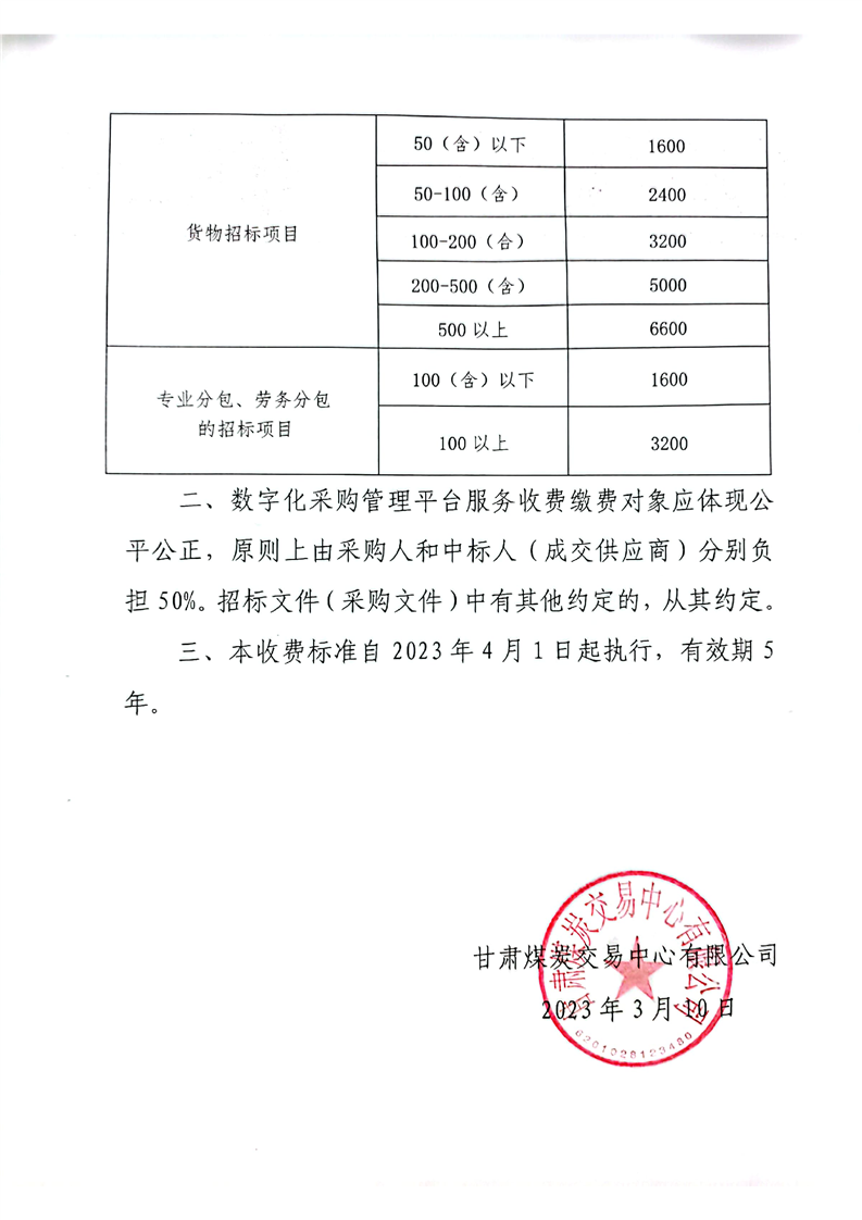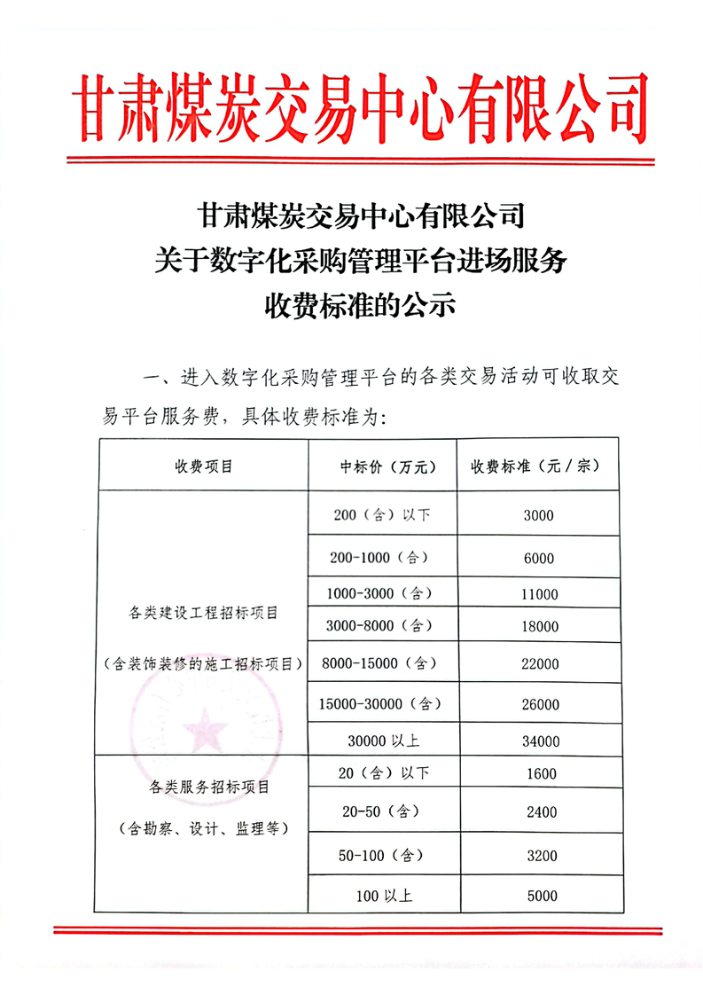 關于數字化采購管理平臺進場服務收費標準的公示
